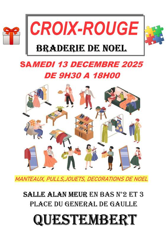La croix-rouge de questembert organise sa braderie de noël, ouverte à tous. De très nombreux articles (manteaux, pulls, chaussures, jouets, décoration de noël…) neufs et d’occasion à tout petit prix.