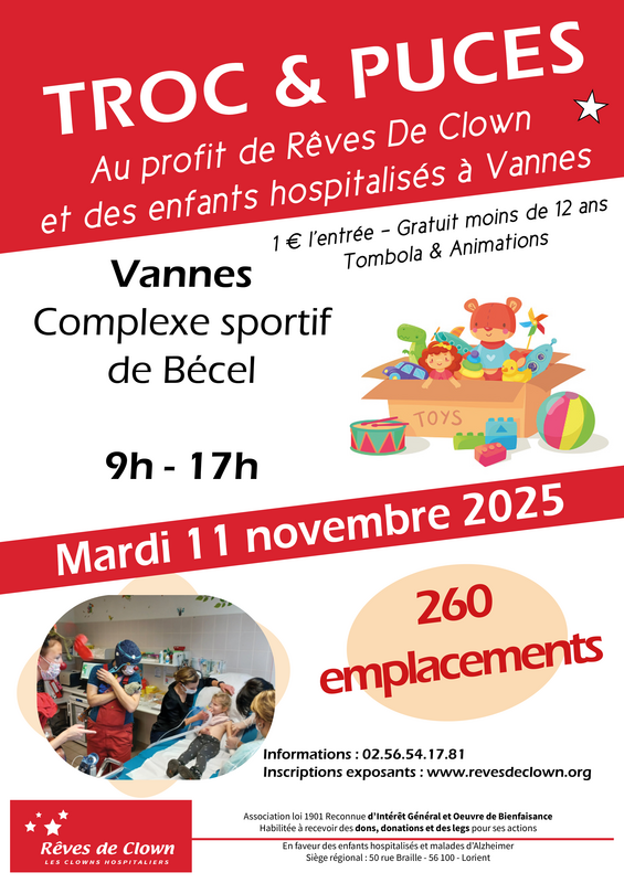 Le comité de soutien de l'association rêves de clown organise son annuel troc et puces à la salle bécel le 11 novembre.