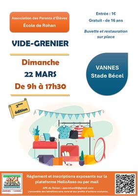 Deuxième édition du vide-grenier de l’ape de l’école de rohan à la salle bécel de vannes