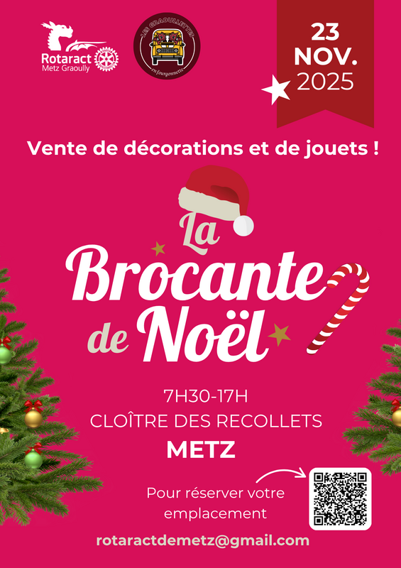 Le rotaract metz graoully organise le dimanche 23 novembre sa brocante de noël ! Les deux thèmes de cette brocante sont les jouets et les décorations de noël.