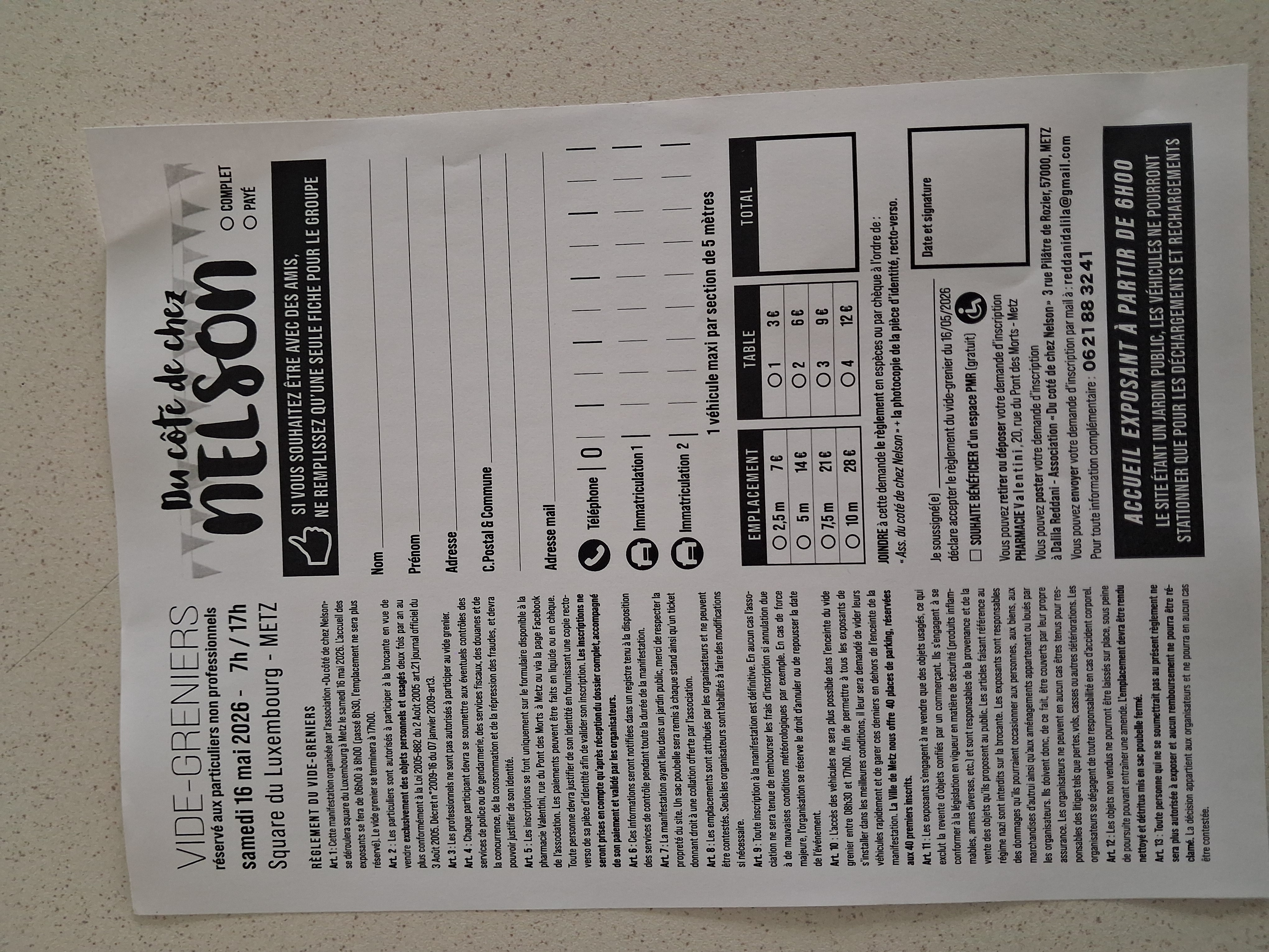Brocante dans un jardin public, avec restauration sur place géré par les organisateurs.
