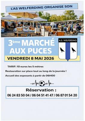 L'A.S welferding organise son 3eme marché aux puces le vendredi 8 mai 2026.