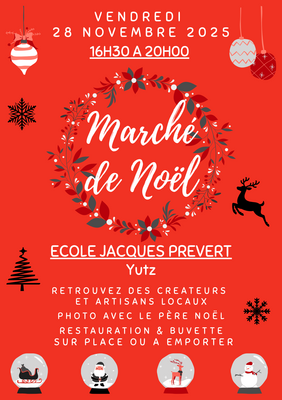 Venez passez un moment convivial au marché de noël de l'ecole prévert. Le marché aura lieu sous le grand préau de l'école. Vous y trouverez de bons et beaux produits faits par des créateurs et artisans locaux!