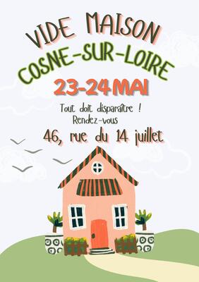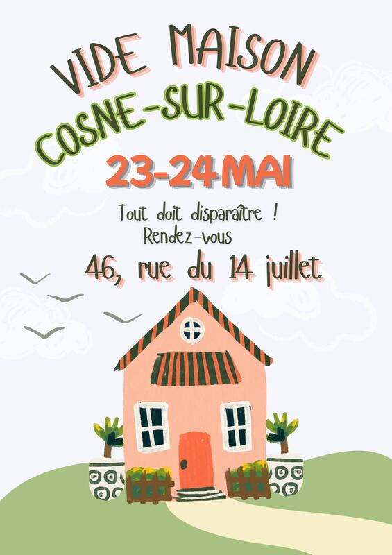 nous organisons un vide-maison au 46 rue du 14 juillet, 58200 cosne-sur-loire les 23 et 24 mai 2026. Nous vous accueillerons de 9h30 à 18h.