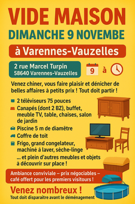 Vide maison – dimanche 9 novembre à varennes-vauzelles !