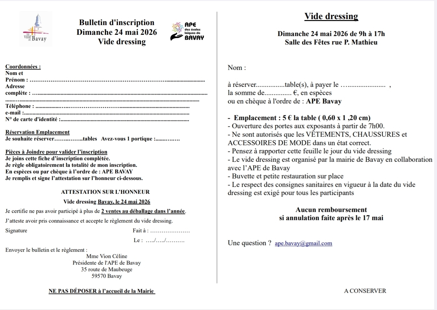 5€ la table de 1m20