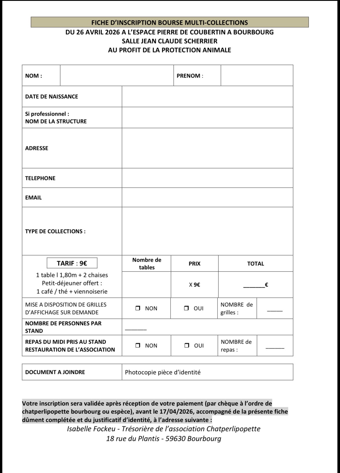 tous les bénéfices de l'événement sont au profit de la protection animale (chats errants et abandonnés : stérilisations, soins vétérinaires, vaccinations, mises à l'adoption).