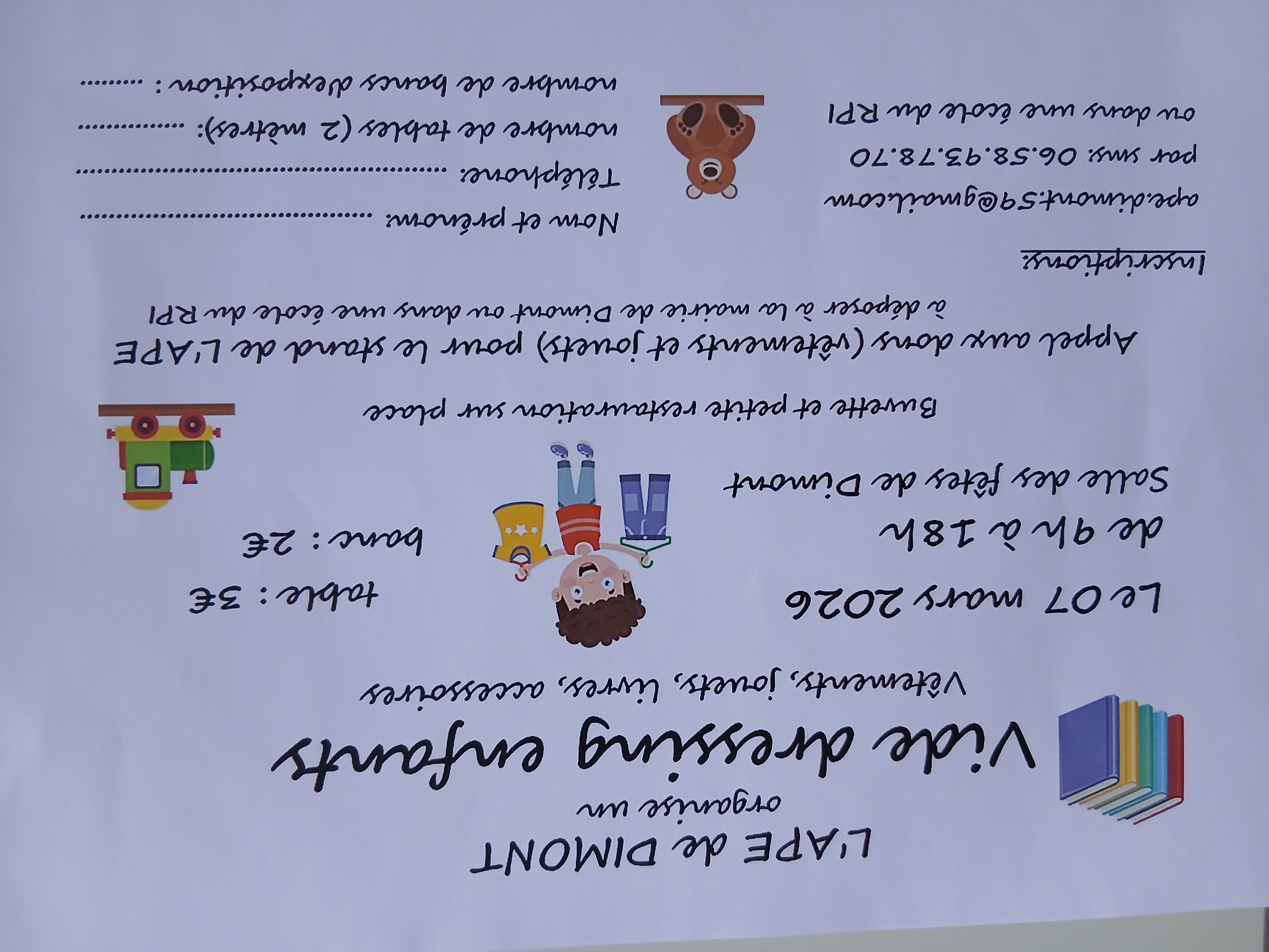 L'ape de dimont organise son vide dressing spécial vêtements, jouets et livres enfants.