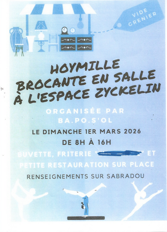 L'association ba.Po.S'ol organise sa brocante le dimanche 1er mars à l'espace zyckzelin rue du zyckelin à hoymille de 8h à 16h.