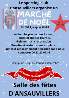 Le sporting club d'ansauvillers organise un marché de noël .