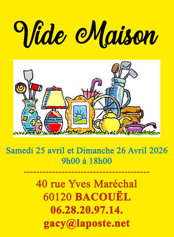 Nous organisons un grand vide‑maison au 40 rue yves maréchal, 60120 bacouël.