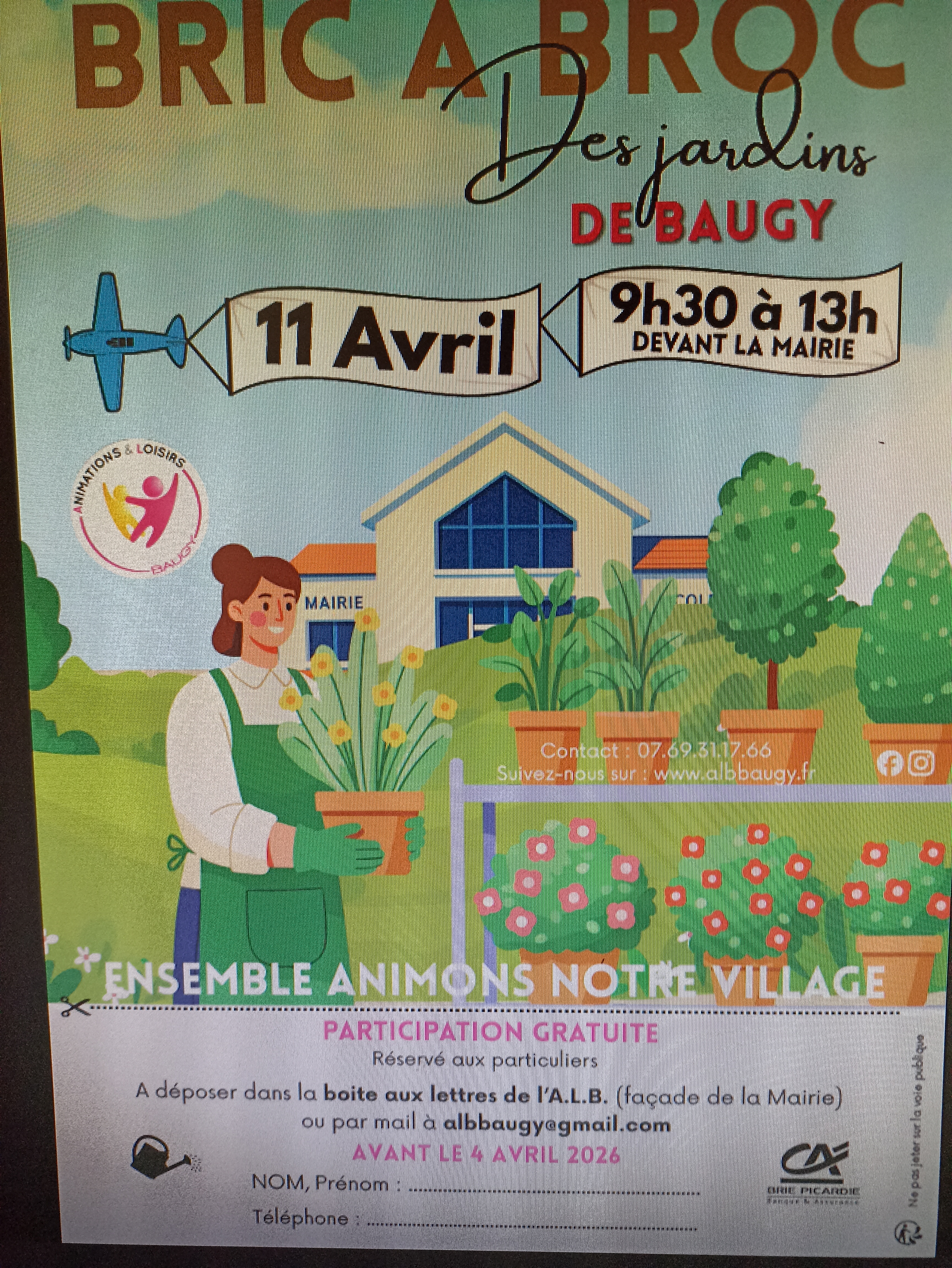 C'est le printemps ! Vous souhaitez vendre ou échanger des graines, des fleurs, des arbres ou des plantes... Vous voulez vous séparer de votre tondeuse, vos pots de fleurs, votre sécateur... Alors, n'hésitez plus, inscrivez-vous ! Réservé aux particuliers. De 9h à 13h, sur la place du village