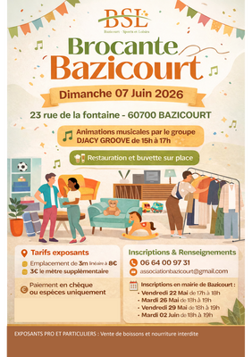 L’association bsl – bazicourt sports et loisirs organise sa grande brocante annuelle à bazicourt.