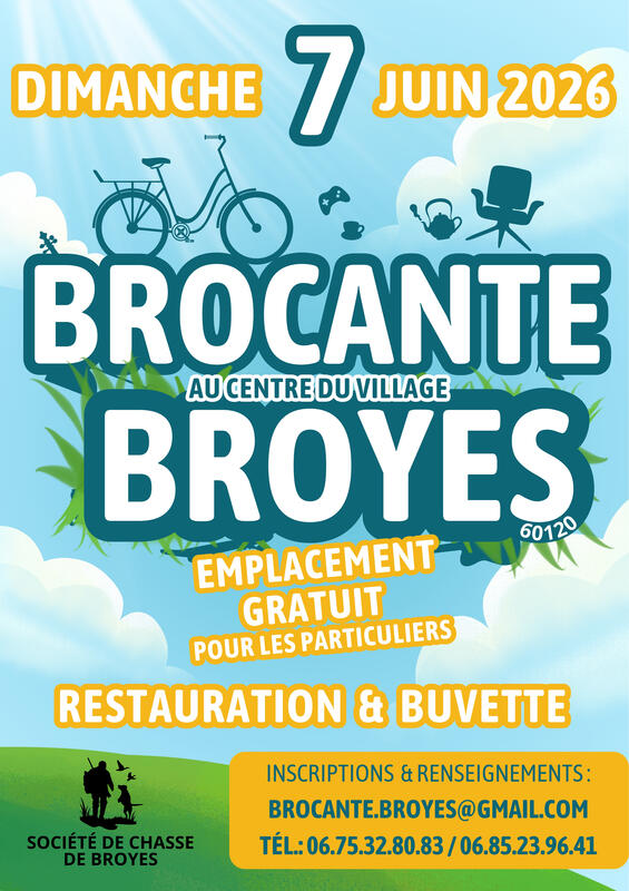 Brocante broyes 60120 au centre du village emplacement gratuit pour les particuliers > restauration et buvette sur place.