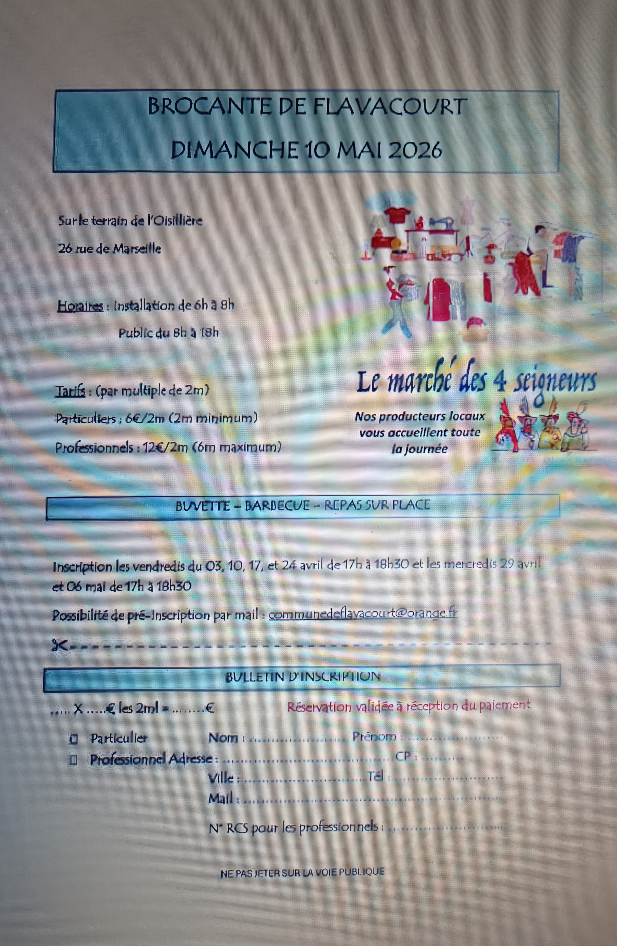 Brocante annuelle avec acceuil de nos producteurs locaux du marché des 4 seigneurs toute la journée. Barbecue, repas sur place, buvette