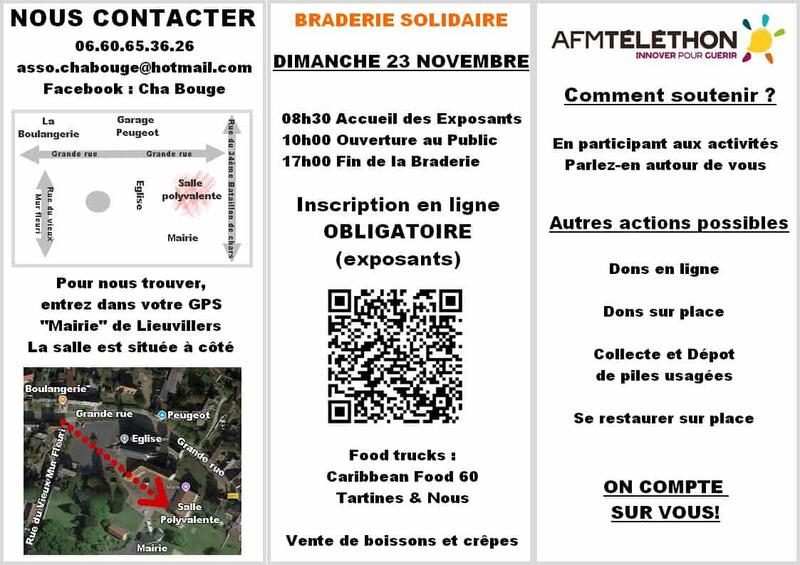 A l'occasion du téléthon 2025, nous organisons une braderie en salle ouverte aux particuliers et professionnels (table 2m fournie). Place limitée