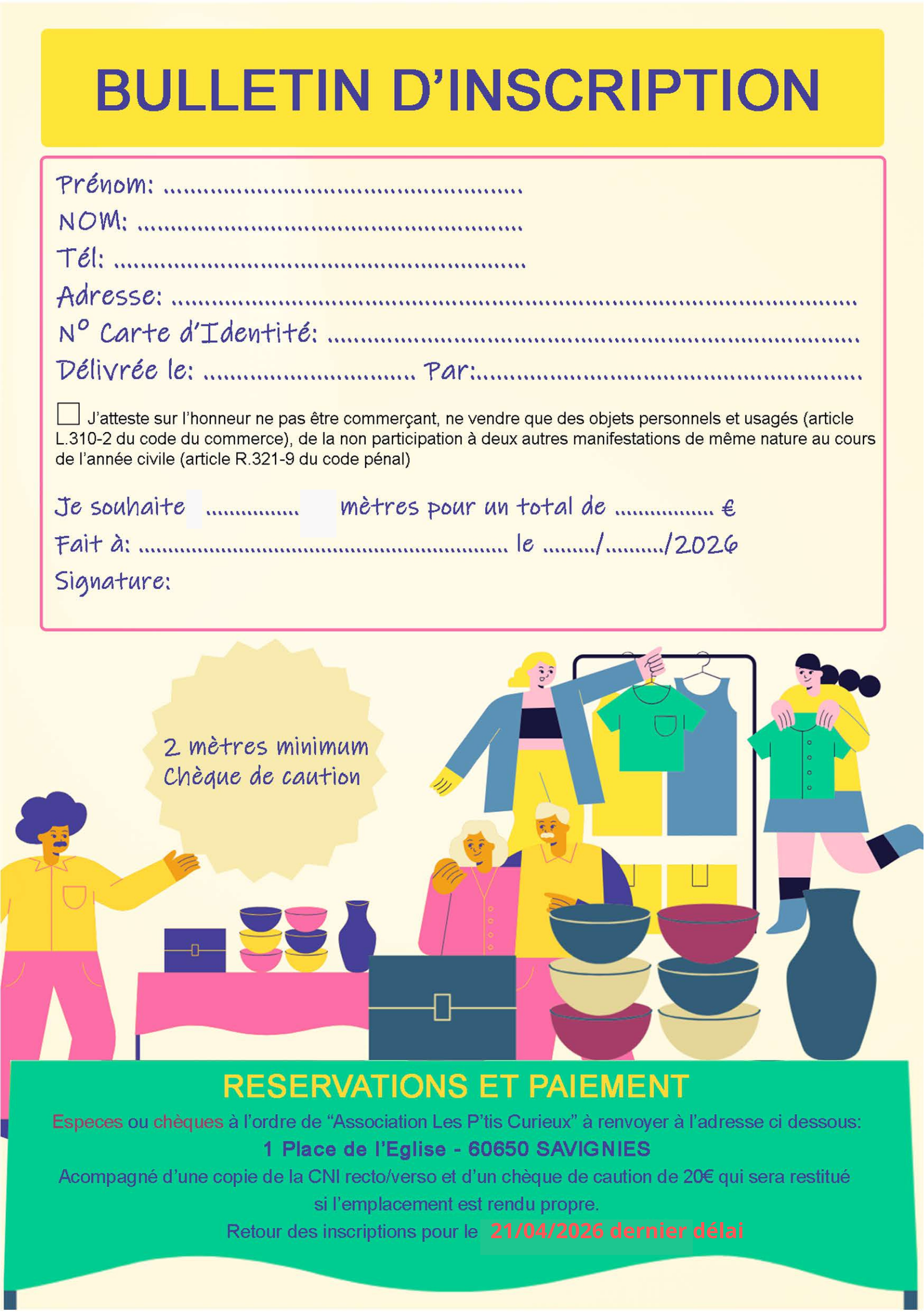 Venez nombreux chiner, les inscriptions pour les exposants sont ouvertes.