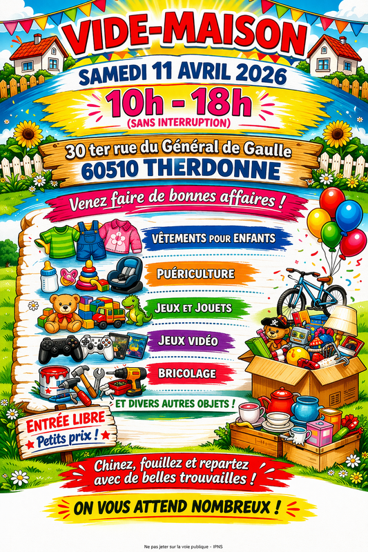 Venez nombreux au vide maison organisé au 30 ter rue du général de gaulle à therdonne.