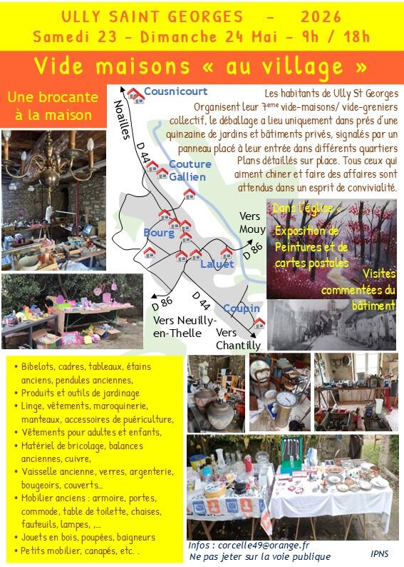 Les habitants de ully st georges organisent leur 7eme vide-maisons/ vide-greniers collectif, le déballage a lieu uniquement dans près d’une quinzaine de jardins et bâtiments privés, signalés par un panneau placé à leur entrée dans différents quartiers