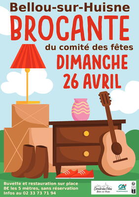 Brocante organisée par le comité des fêtes de bellou sur huisne.