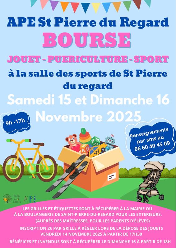rdv le 15 et 16 novembre pour notre bourse aux jouets puériculture et sport ️ qui aura lieu au gymnase de saint pierre du regard.