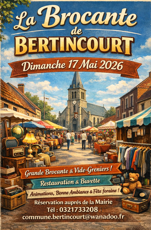 Rendez-vous à la grande brocante de bertincourt ! Plus de 300 emplacements vous attendent pour chiner et dénicher vos trésors. Restauration sur place pour vous régaler et fête foraine pour divertir petits et grands. Un événement incontournable qui attire une foule nombreuse d'amateurs et de curieux. Ne manquez pas cette journée conviviale !