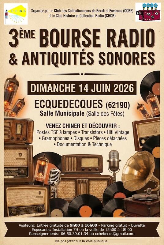 Passionnés de son vintage, collectionneurs ou simples curieux, le club des collectionneurs de berck et environs (ccbe) a le plaisir de vous inviter à sa 3ème bourse radio et antiquités sonores !
