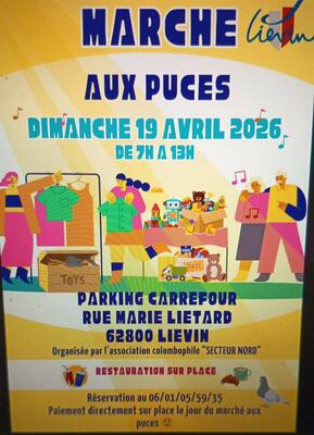 Le siège secteur nord colombophile organise comme chaque année son marché aux puces sur le parking carrefour. Les réservations et règlements se feront sur place.
