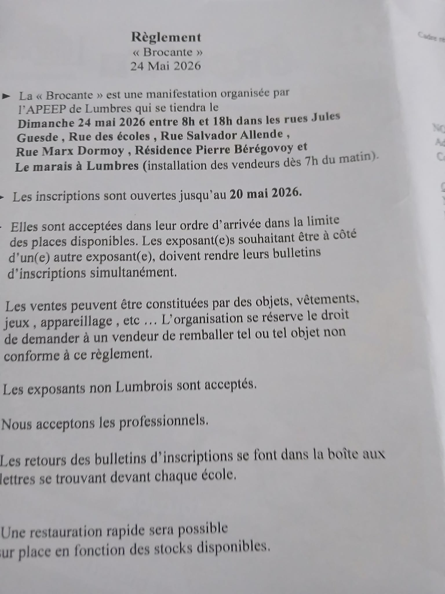 La brocante se déroulera dans les rues jules guesde , des ecoles , salvador allendé, marx dormoy , résidence pierre bérégovoy et le marais de lumbres.