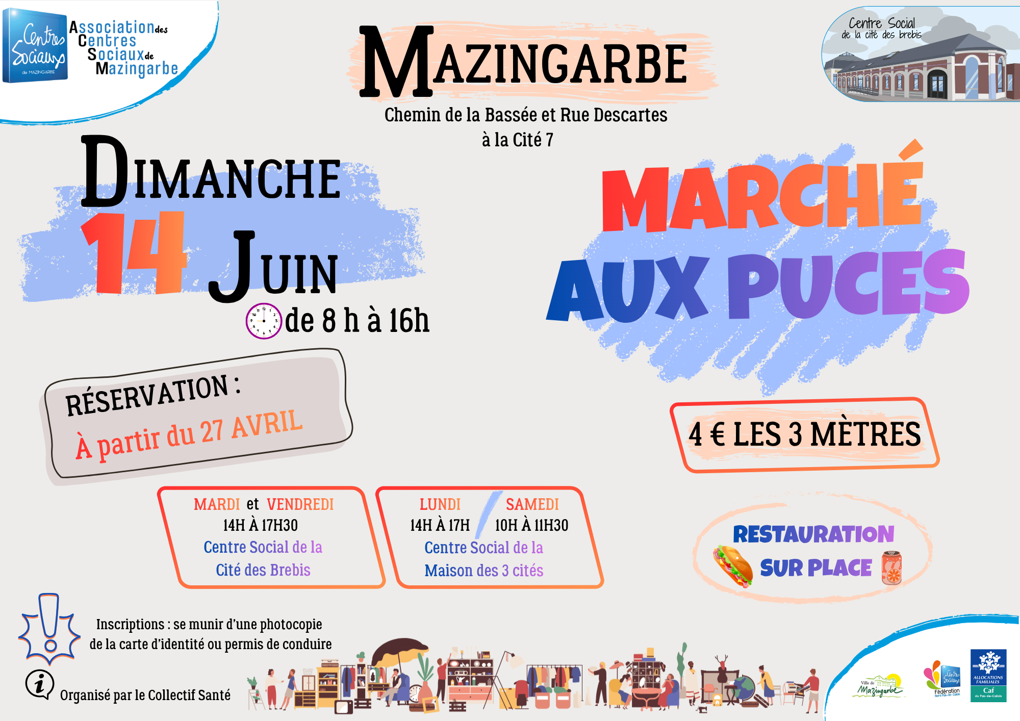 au centre social de la maison des 3 cités : lundi de 14h à 17h et samedi de 10h à 11h30