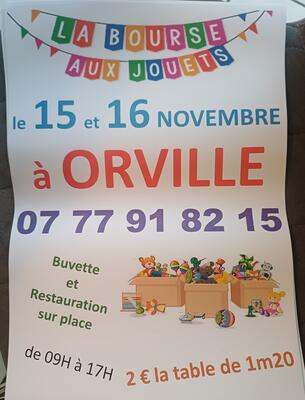 Bourse aux jouet le samedi 15 et le dimanche 16 novembre à la salle polyvalente 1 rue noël débureaux 62760 orville