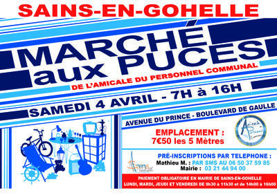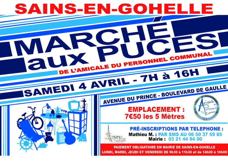 l’association de l’amicale du personnel communal vous donne rendez-vous pour son marché aux puces le samedi 4 avril sur le boulevard du général de gaulle et l’avenue du prince.