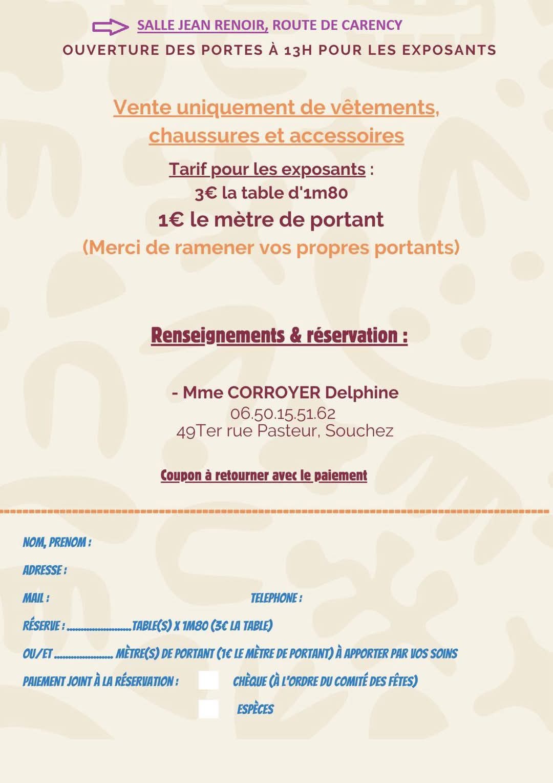 1 € le portant d'1 mètre (portants non fournis)