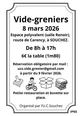 6 euros la table de 1m80 réservation obligatoire par mail à : (préciser : nom prénom téléphone nombre de tables souhaitées - particuliers ou professionnels, si professionnels quel type de vente). Particuliers et professionnels (sauf alimentaires)