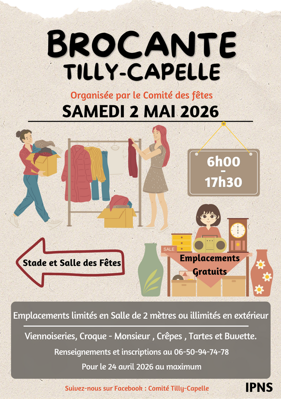 Brocante de tilly-capelle organisée par le comité des fêtes . Pour tout renseignement veuillez pour renseigner sur l'affiche