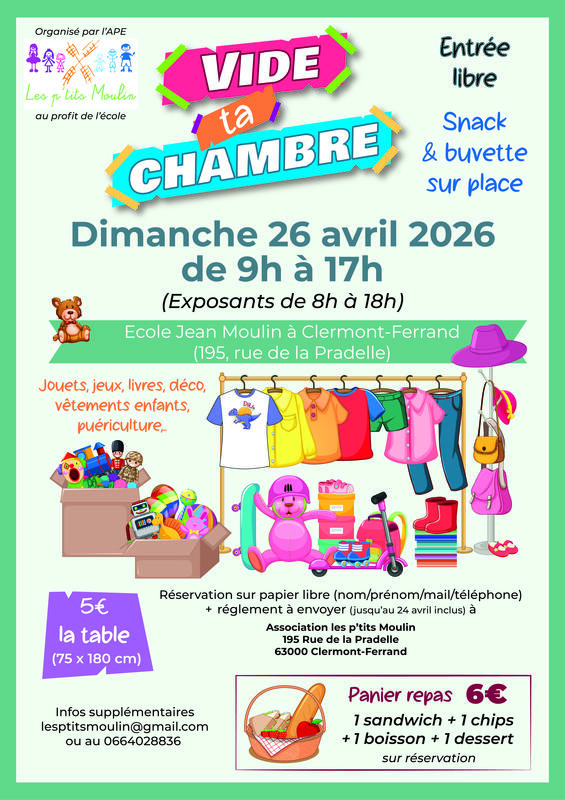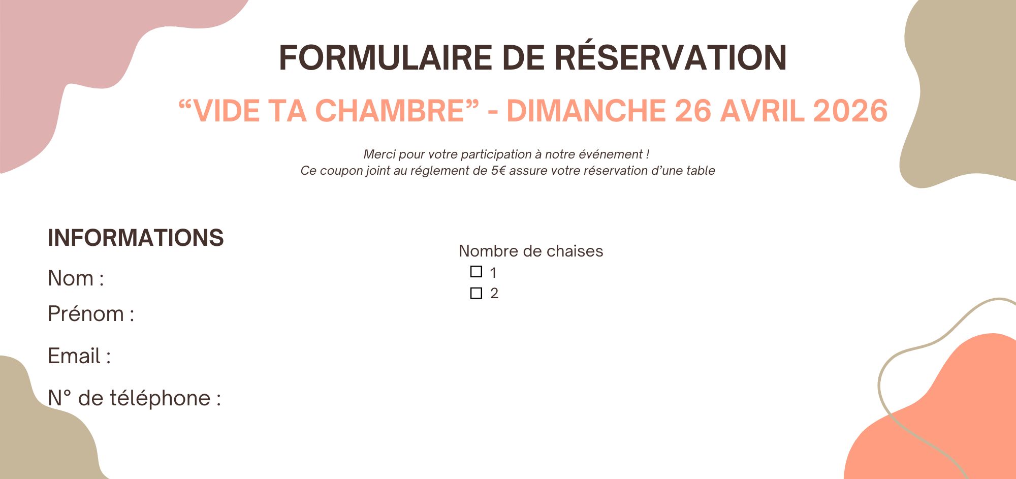 5 € l'emplacement (table fournie de 75 x 180 cm + chaises)