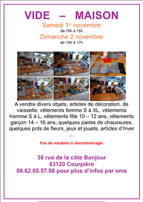 . Nombreuses affaires à vendre : décorations, bibelots, vaisselle, vêtements femme/homme/ado, chaussures, sacs , pots de fleurs, jeux/jouets, livres, articles d'hiver, etc ...