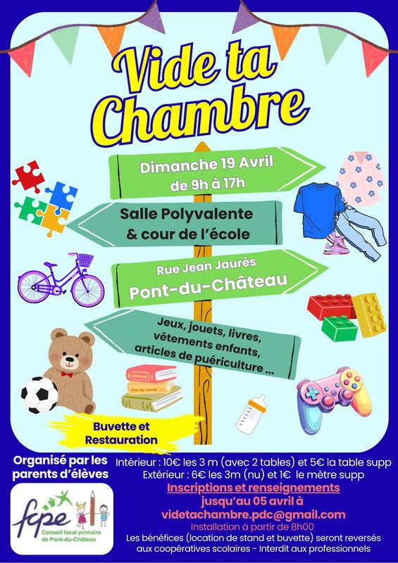 les bénéfices dégagés par la location des stands et par la buvette seront reversés aux coopératives scolaires des écoles primaires de pont du château