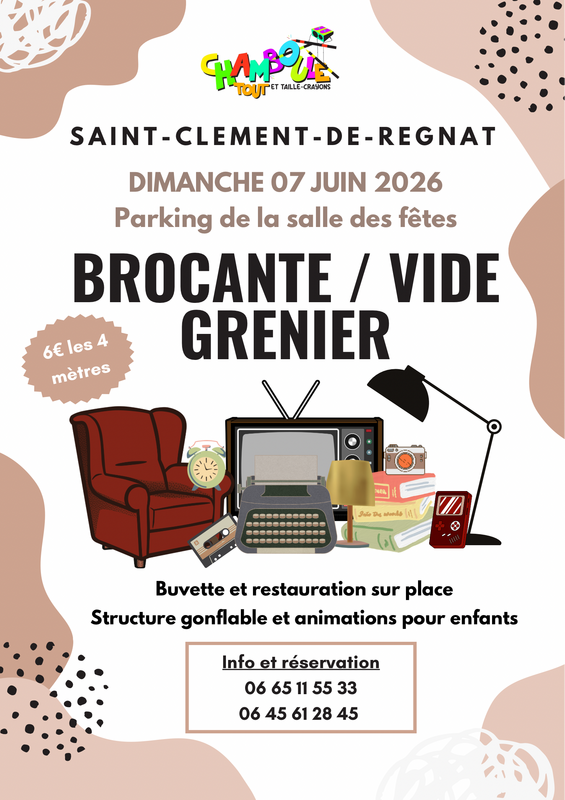 L’ape de saint-clément-de-régnat organise son 4ème vide-grenier le dimanche 07 juin 2026.