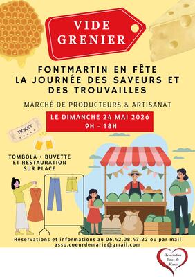 L'association coeur de marie organise son traditionnel vide grenier avec une nouvelles édition sous forme de vide grenier et marché de producteurs