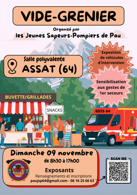 Les jeunes sapeurs-pompiers de pau organisent un vide-grenier le 9 novembre 2025 à assat (salle polyvalente)