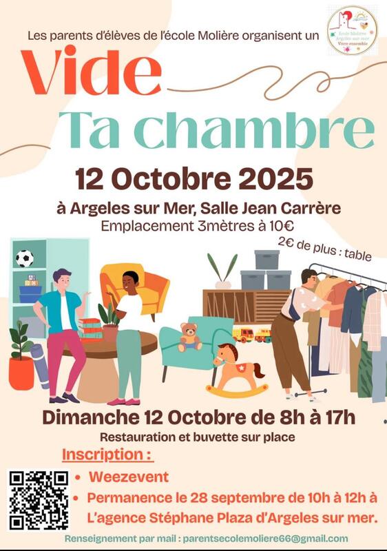 Les parents d'élèves de l'école élémentaire molière d'argeles sur mer organise leur vide jouets,vêtements et matériels à destination des enfants.