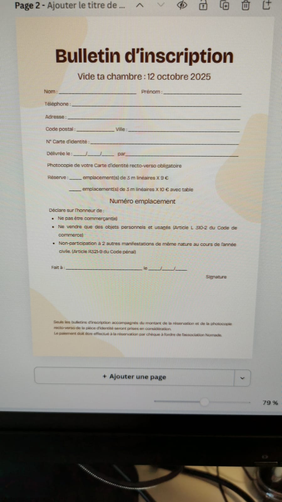 la fiche Événement