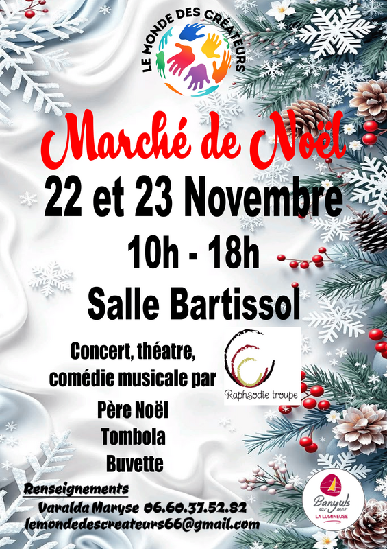 L'animation sera assurée avec raphsodie troupe qui vous proposera un concert, une comédie musicale, un spectacle burlesque et pleins de surprises. Notre père noël sera présent pendant ces 2 jours.
