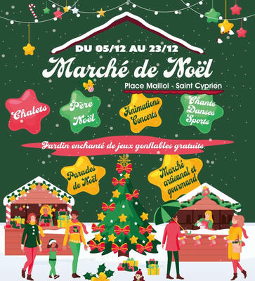 Du vendredi 5 au mardi 23 décembre le marché de noël s’installe à saint-cyprien. Préparez-vous à vivre une ambiance féérique avec des animations pour petits et grands !