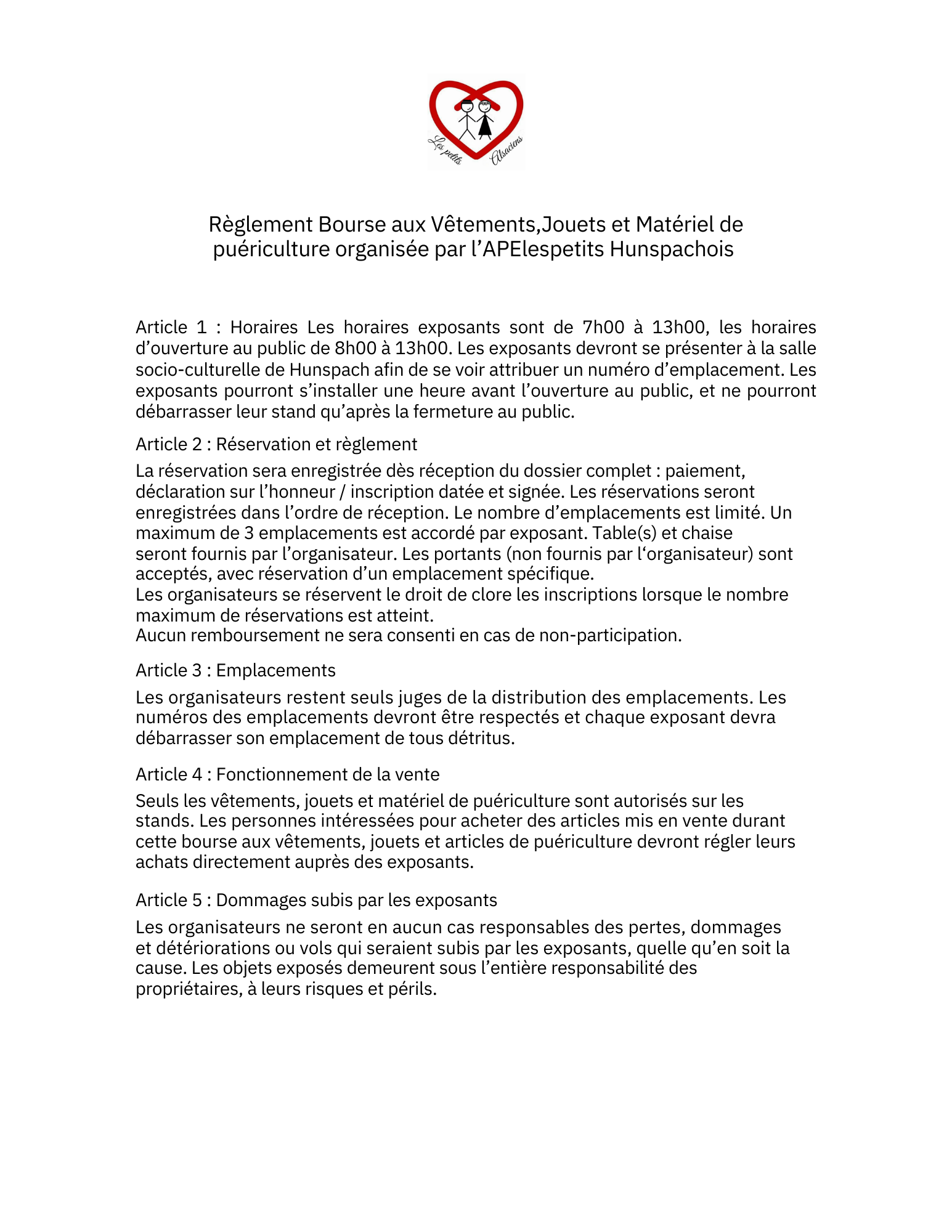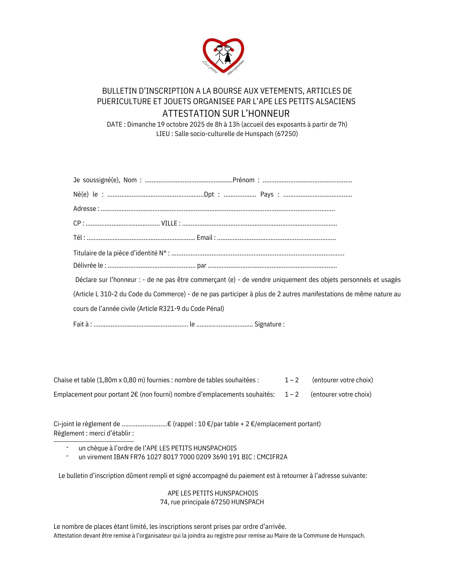 La réservation d'une table + un emplacement de portant (non fourni par l'association) est de 12€