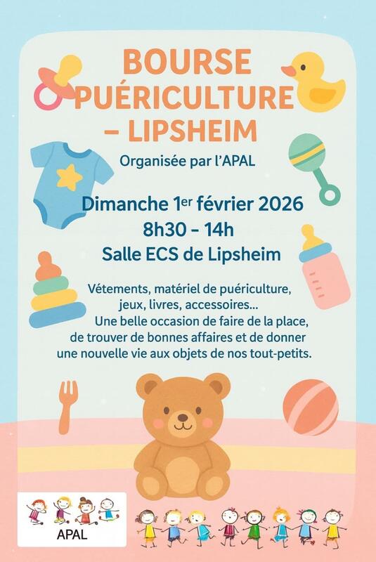 Bouse puériculture, enfance,jouets organisée par l'apal à la salle polyvalente "ecs" de lipsheim, rue de la croix.