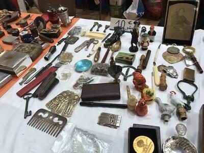 Les divers stands proposent des objets divers de collection : bibelots, livres, tableaux, mais également articles de brocante-puces classique, poterie et artisanat. Mais également quelques habits;