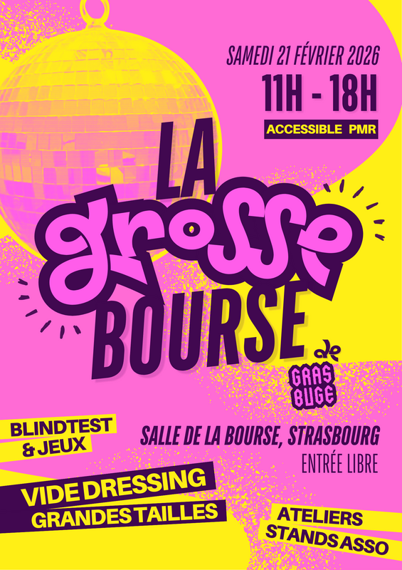 L’association grasbuge organise le 21 février prochain, de 11h à 18h, un grand vide-dressing grande taille, accompagné d’une journée festive, solidaire et ouverte à toutes et tous. L’événement se tiendra à la salle de la bourse à strasbourg, et a pour ambition de créer un espace convivial et bienveillant et de célébration des corps dans toute leur diversité. Pensé comme un moment de rencontre, de partage et de sensibilisation, cet événement s’adresse aux personnes concernées comme aux allié·es, dans une atmosphère chaleureuse et accessible.