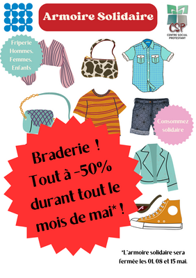 Durant tout le mois de mai, nous organisons une grande braderie dans le cadre de l’armoire